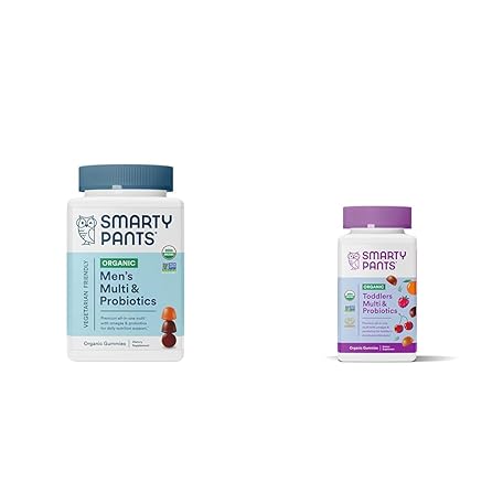 Thông tin sản phẩm SmartyPants Multivitamin for Men, Organic Gummies: Probiotics, CoQ10, Methylfolate, Omega 3 (ALA) & Organic Toddler Multivitamin Gummies: Probiotics, Omega 3 (ALA), Vitamin D3, C, Vitamin