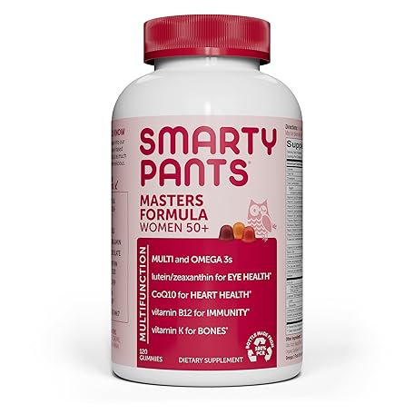Thông tin sản phẩm SmartyPants Multivitamin Gummy for Women 50 and Over: Omega 3 Fish Oil (EPA/DHA), Methylfolate, CoQ10, Vitamin D3, C, Vitamin B12, B6, A, K & Zinc, Biotin, Gluten Free, 120 Count (30 Day Supply)