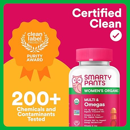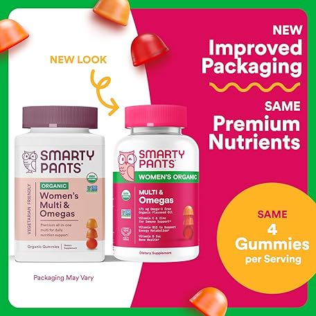 SmartyPants Organic Women's Multivitamin Gummies: Biotin, Methylfolate, Omega 3 (ALA), Vitamin D3, C, Vitamin B12, B6, A, K & Zinc, Inositol, Gluten Free, Vegetarian, 120 Count (30 Day Supply)