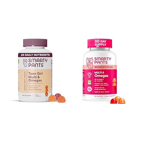 SmartyPants Women's and Teen Girl Multivitamin Gummies Bundle: Omega 3 (DHA/EPA), Methylfolate, CoQ10, Vitamin D3, C, Vitamin B12, B6, Vitamin A, K & Zinc, Gluten Free (30 Day Supply)