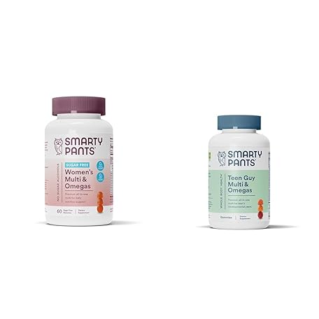 Thông tin sản phẩm SmartyPants Women's Multivitamin Gummies, Sugar Free: Biotin, Methylfolate, Omega 3 (ALA), Vitamin D & Teen Guy Multivitamin Gummies: Omega 3 Fish Oil (EPA/DHA), Vitamin D3, C, Vitamin B12, B6