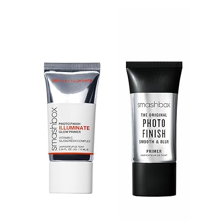 Smashbox Original Photo Finish Smooth & Blur Primer + Illuminate Glow Primer Travel Set | Includes Photo Finish Primer to Smooth & Blur Skin, 0.34 Fl Oz + Illuminate Primer For Luminosity, 0.34 Fl Oz