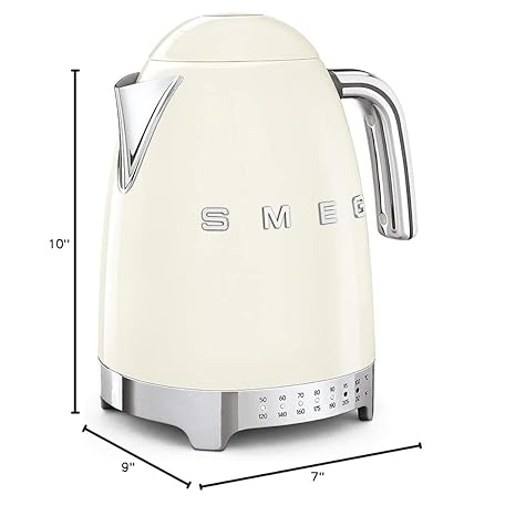 Thông tin sản phẩm Smeg 50's Retro 7 Cup Stainless Steel Variable Temperature Electric Kettle with 7 Temperature Settings, Led Display, Swivel Base and Keep Warm Function Cream KLF04CRUS