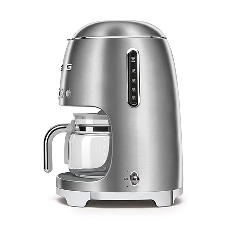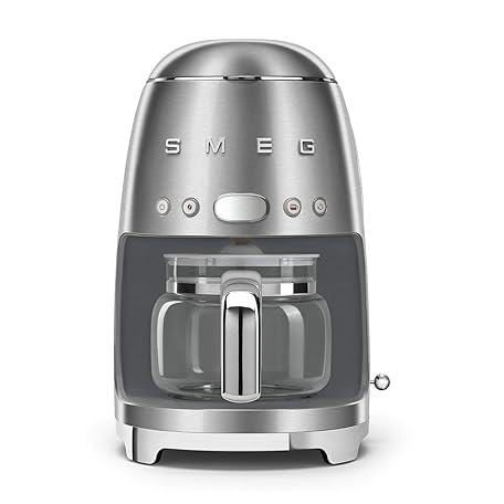 Thông tin sản phẩm Smeg 50's Retro Style Aesthetic Drip Coffee Machine with 10 Cup Glass Carafe, Auto Start Feature, Keep Warm Plate, and Two Coffee Strength Settings (Brushed Stainless Steel)