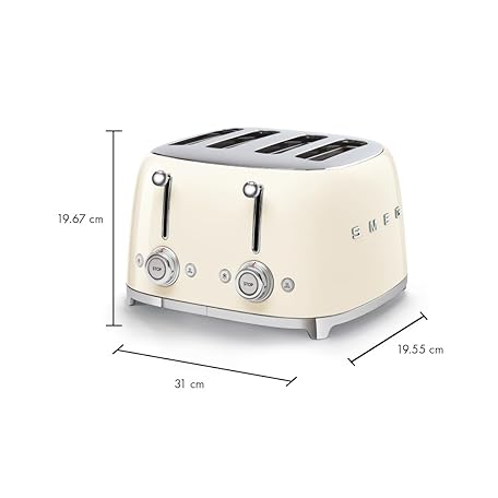 Sản phẩm Smeg 50's Style Retro Aesthetic 4 Slice Toaster 6 Presets Extra Wide Slots Cream TSF03CRUS đang được bán với giá ưu đãi là $294.2455 tại nước Mỹ.