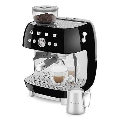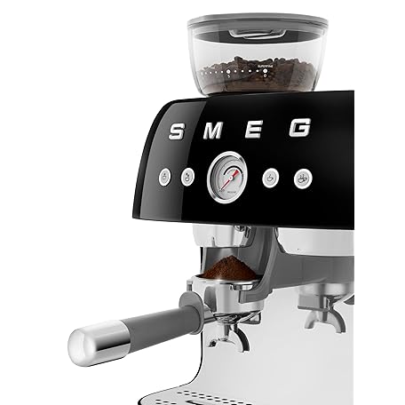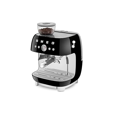 Thông tin sản phẩm Smeg EGF03 Semi-Automatic Espresso Machine with Built-In Grinder, Dual Thermoblock, 50’s Retro Style – Black (120 V)