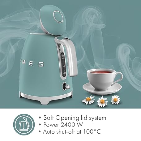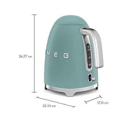 Thông tin sản phẩm Smeg KLF03 7 Cup Electric Water Kettle, Retro-Style, Soft-Opening Lid, Auto Shut-Off, 360° Swivel Base – Jade