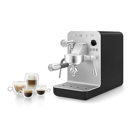 Thông tin sản phẩm Smeg Semi-Pro Espresso Machine – 15-Bar Pump, Triple Thermoblock Heating, 58mm Filter Holder & Steam Wand – Made in Italy (Black)
