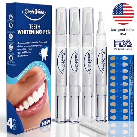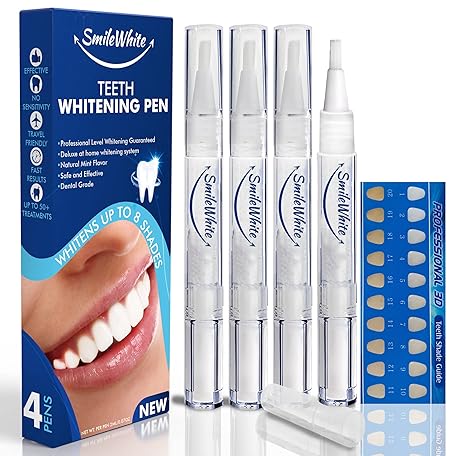 Thông tin sản phẩm SmileWhite Teeth Whitening Pen (4 Pack), No Sensitivity Teeth Whitening Gel, Best Teeth Whitening Pen, Removes Stains, Effective, Enamel Safe, Fast Results, Travel Friendly, Natural Mint Flavor