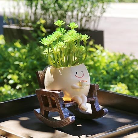Sản phẩm Smiley Face Planter Pot, Cute Resin Smile Face Flower Head Plant Pot, Creative Flower Pot for Indoor Outdoor Plants, Funny Home Decoration (Rocking Chair) đang được bán với giá ưu đãi là $18.5191 tại nước Mỹ.