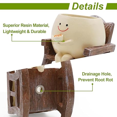 Thông tin sản phẩm Smiley Face Planter Pot, Cute Resin Smile Face Flower Head Plant Pot, Creative Flower Pot for Indoor Outdoor Plants, Funny Home Decoration (Rocking Chair)