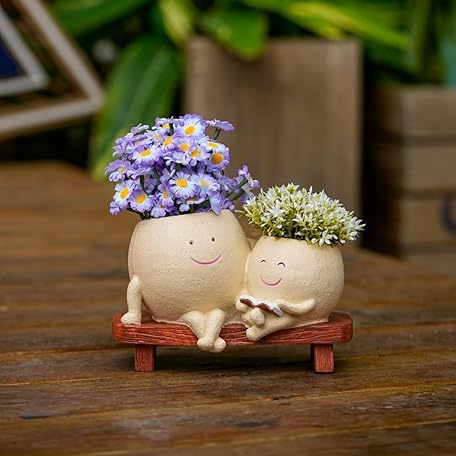 Smiley Face Planters Pot, Double Face Planters Pots Head Planter for Indoor Plants, Succulent Flower Pots with Drainage Hole, DIY Gift Decorative Novelty Planter Khaki