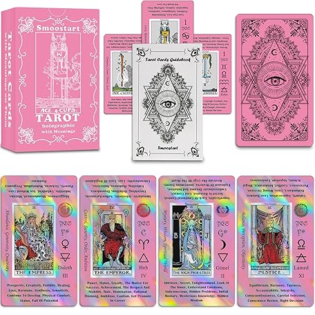Thông tin sản phẩm Smoostart Pink Tarot Cards for Beginners with Meanings on Them, Surface Laser Cards Holographic Tarot with Guide Book, Tarot Cards Deck with Keywords
