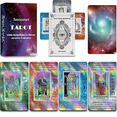 Thông tin sản phẩm Smoostart Tarot Cards for Beginners with Meanings on Them, Surface Laser Cards Holographic Tarot with Guide Book, Tarot Cards Deck with Keywords