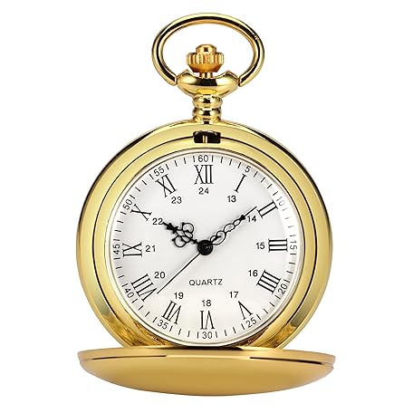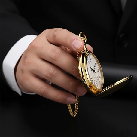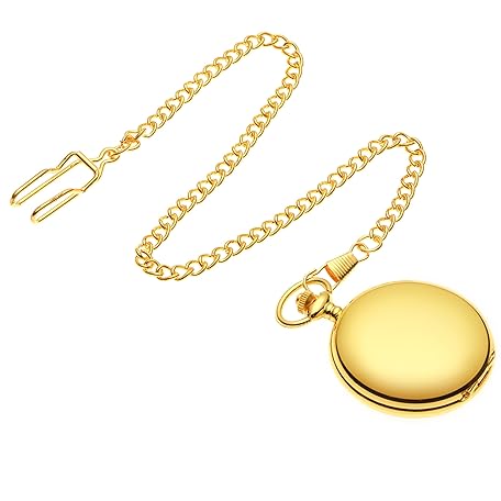 • Smooth Vintage Pocket Watch with Chain, Classic Alloy Pocket Watches for Men Women, 1920s Style Quartz Pocketwatch, 1.78" Diameter