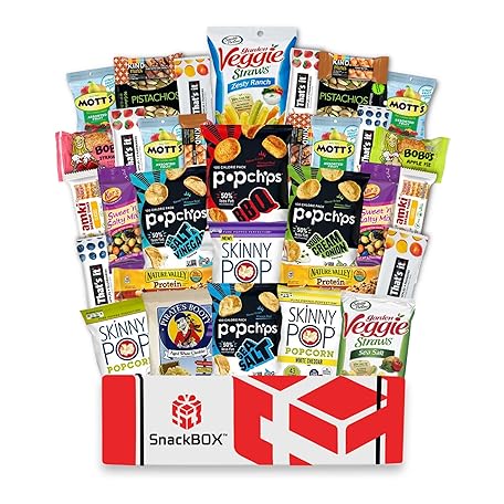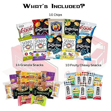 Thông tin sản phẩm Snack BOX Gluten Free Healthy Care Package (34 Count) Fathers Day Holiday, Teachers, Back to School, College, Students, Exams, Gift Baskets, Birthday, Office, Over 3 LBS of Variety Pack Chips, Popcorn, Bars.