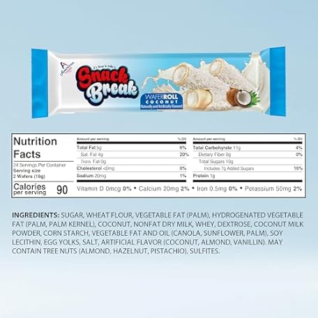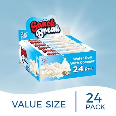 Thông tin sản phẩm SNACK BREAK Coconut Wafer Rolls, Rolled Wafer Cookies, Coconut Coated Delicious Snack, Individually Wrapped, Crunchy Sticks for On-the-Go, Coffee, Tea, Pack of 24