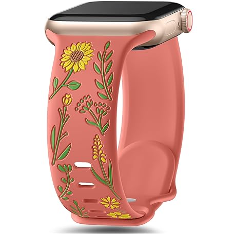 SNBLK Floral Band Compatible with Cute Apple Watch Bands for Women 40mm 41mm 38mm 42mm 44mm 45mm 46mm 49mm, Flower Engraved Silicone Inlay Dressy Strap for iWatch Series 10 9 8 7 6 5 4 3 2 1 Se Ultra