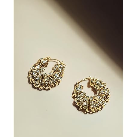 SNGIA Chunky 18K gold plated Hoop Earrings with CZ - Dangle, Statement, Drop & Small Hoops - Women's 18K gold plated Jewelry