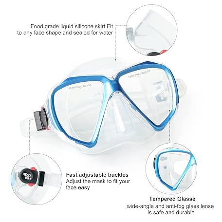 Thông tin sản phẩm Snorkel Diving Mask Panoramic HD Swim Mask, Anti-Fog Scuba Diving Goggles,Tempered Glass Dive Mask Adult Youth Swim Goggles with Nose Cover for Diving, Snorkeling, Swimming