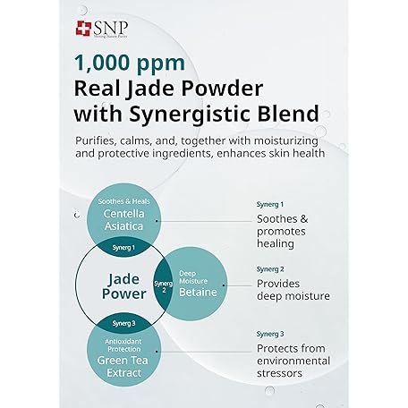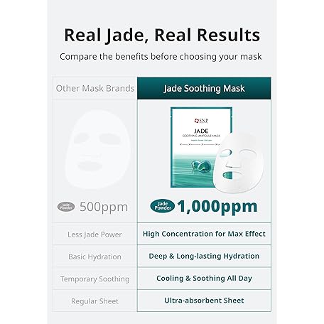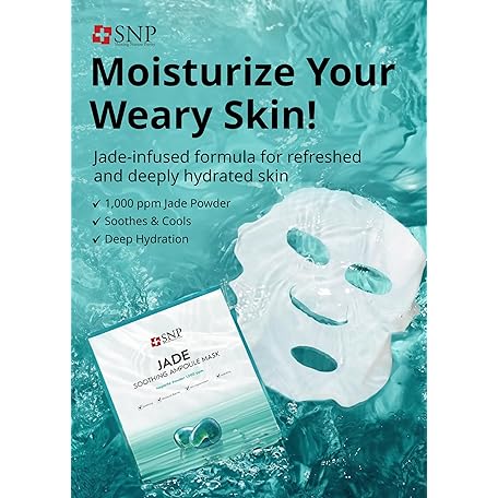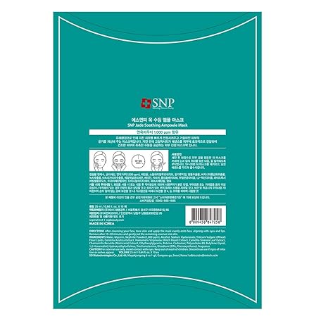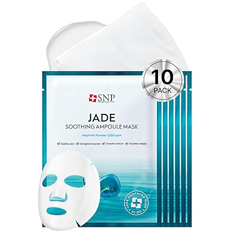 Thông tin sản phẩm SNP 1000ppm Real Jade Mineral Ampoule Sheet Mask | Cleansing and Purifying All Sensitive Skin Types | Calming, Hydrating, and Moisturizing Facial Skin | Korean Face Masks Skincare | 10 Sheets