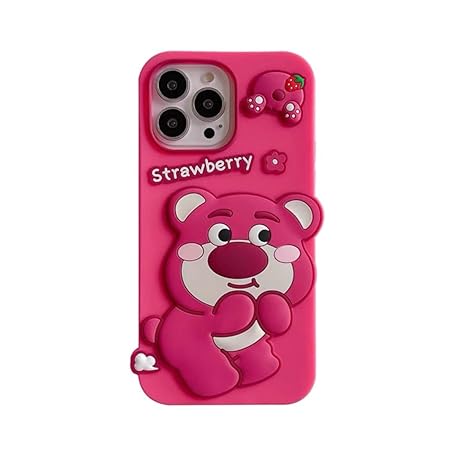 Soft Silicone Phone Case for Apple Lotso Huggin Bear Teddy Strawberry Butt Fart Hot Pink 3D Cartoon Anime Super Fun Adorable Cute Lovely Kawaii Girls Kids (for iPhone 13)