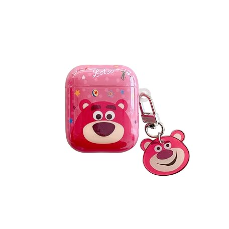 • Soft TPU Case with Keychain Charm for Apple AirPods 1 2 AirPods1 AirPods2 1st 2nd Generation 2019 Lotso Huggin Bear Pink Color Animation Anime Cartoon Cute Lovely Adorable Kids Girls