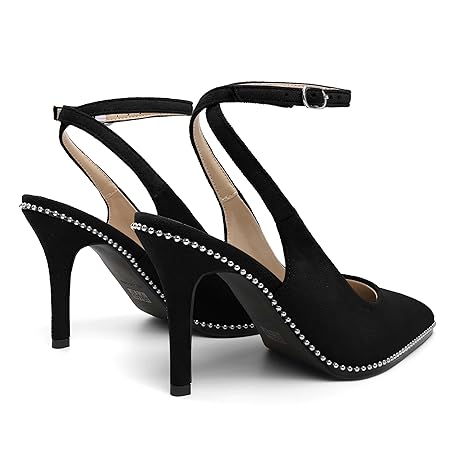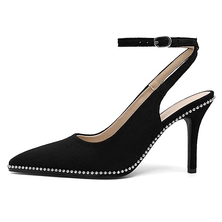 • Soireelady Women Slingback High Heel Beaded Pumps Pointed Toe Stilettos Slip On Strappy Heels Ankle Strap Dress Pumps Shoes 3.5 Inches