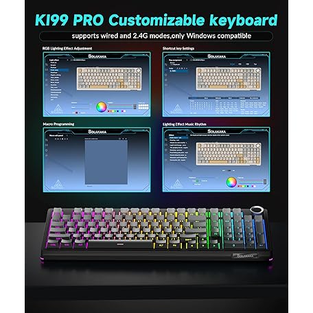 Thông tin sản phẩm SOLAKAKA KI99 Pro 96% Wireless Mechanical Keyboard, RGB Gaming Keyboard, Hot-Swappable Pre-Lubed Switches, Gasket Structure Creamy Keyboards (Gradient-Black, Non-Silent Version)