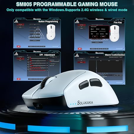 SOLAKAKA SM805 Lightweight Wireless Gaming Mouse,24000 DPI,Tri-Modes Connection,BT5.0/Type-C Wired/2.4G Wireless Mouse Gaming with 2 Side Buttons, Engineering Grip Custom Mouse for Gamer,White