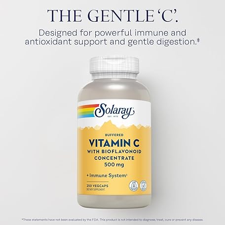 Thông tin sản phẩm SOLARAY Buffered Vitamin C 500mg - with Bioflavonoids, Rose HIPS and Acerola Cherry - Immune Support Supplement - Easy to Digest, Vegan, Lab Verified, 60-Day Guarantee - 250 Servings, 250 VegCaps