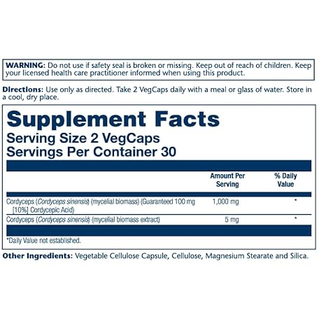 • SOLARAY Guaranteed Potency Mushroom, Cordyceps Extract, Veg Cap (Btl-Plastic) 1000mg | 60ct