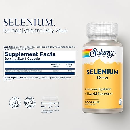 Thông tin sản phẩm SOLARAY Selenium 50 mcg, Healthy Immune System, Thyroid Function & Antioxidant Support, 100 Capsules