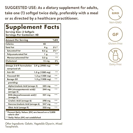 Sản phẩm Solgar 1300 mg Omega 3-6-9, 120 Softgels - Fish Oil Supplement - Support for Joint & Skin Health - Includes Flaxseed & Borage - Contains EPA & DHA Omega 3 Fatty Acids - 40 Servings đang được bán với giá ưu đãi là $31.0759 tại nước Mỹ.