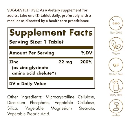 Sản phẩm Solgar Chelated Zinc, 250 Tablets - Zinc for Healthy Skin - Supports Cell Growth & DNA Formation - Exerts Antioxidant Activity - Supports A Healthy Immune System - Non GMO, Vegan - 250 Servings đang được bán với giá ưu đãi là $18.5191 tại nước Mỹ.