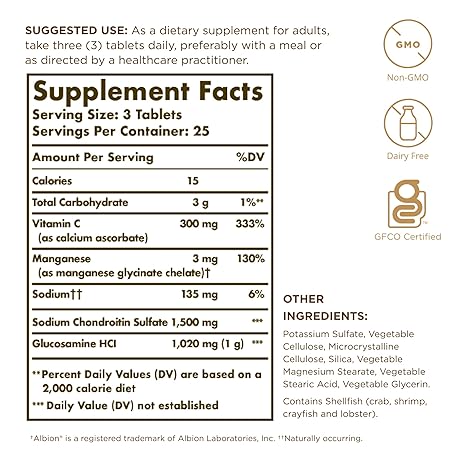 Thông tin sản phẩm Solgar Extra Strength Glucosamine Chondroitin Complex - 75 Tablets - Supports Healthy Joints & Comfortable Movement - Non-GMO, Gluten Free, Dairy Free - 25 Servings