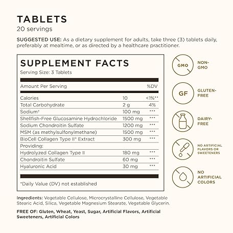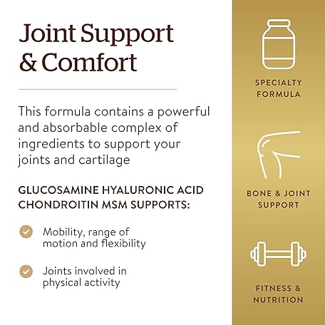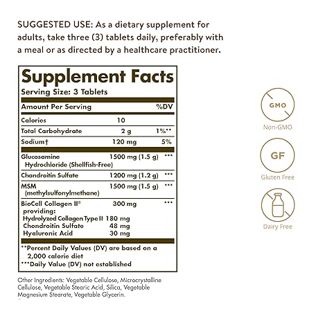 Thông tin sản phẩm Solgar Glucosamine Hyaluronic Acid Chondroitin MSM (Shellfish-Free), 60 Tablets - Joint Support & Comfort - Supports Active Lifestyles - Non-GMO, Gluten Free, Dairy Free - 20 Servings