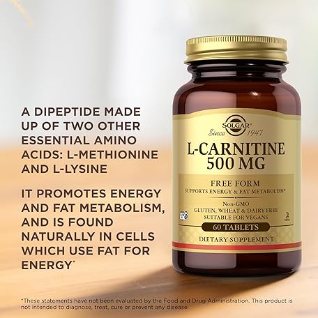 Thông tin sản phẩm Solgar L-Carnitine 500 mg - 60 Tablets - Non-GMO, Vegan, Gluten Free, Dairy Free, Kosher - 30 Servings