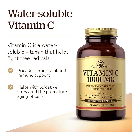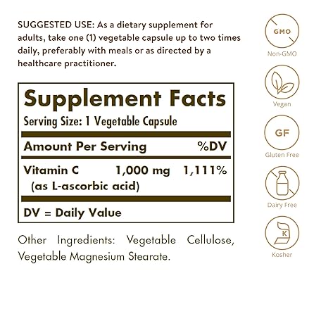 Thông tin sản phẩm Solgar Vitamin C 1000 mg, 100 Vegetable Capsules - Antioxidant & Immune Support - Overall Health - Healthy Skin & Joints - Bioflavonoids Supplement - Non-GMO, Vegan, Gluten Free, Kosher - 100 Servings