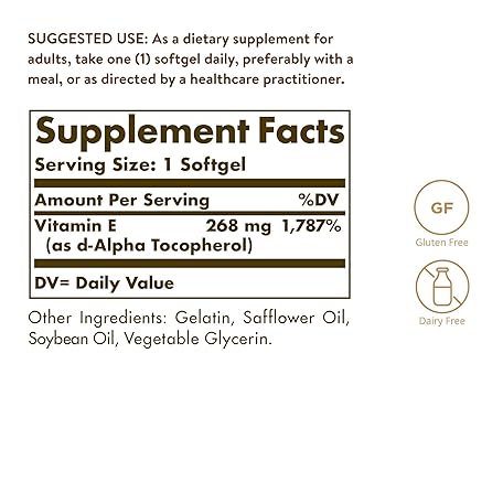 Thông tin sản phẩm Solgar Vitamin E 268 mg (400 IU), 360 Alpha Softgels - Natural Antioxidant, Skin & Immune System Support - Naturally-Sourced Vitamin E - Gluten Free, Dairy Free - 360 Servings
