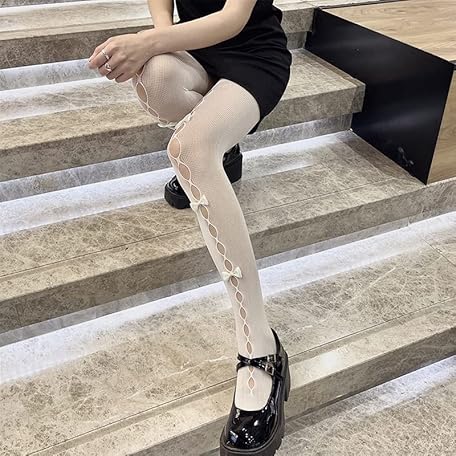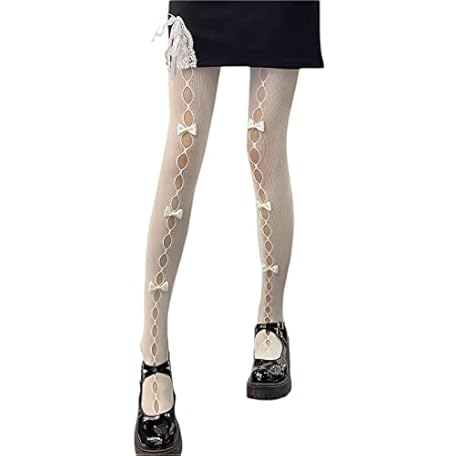 • SOLILOQUY Women's Lolita Patterned Tights Kawaii Bowtie Fishnet Stockings Leggings Mesh Pantyhose Hollow Out lace Socks