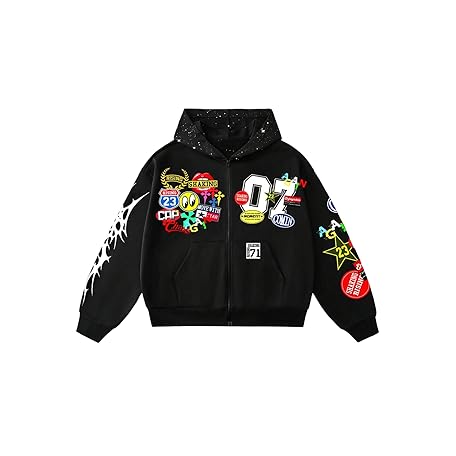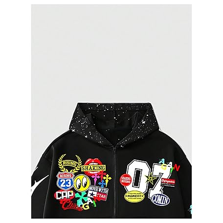 • SOLY HUX Men's Graphic Oversized Hoodies Y2k Zip Up Long Sleeve Hooded Sweatshirt Jacket Streetwear