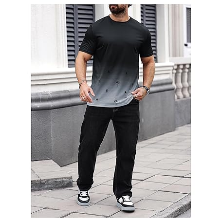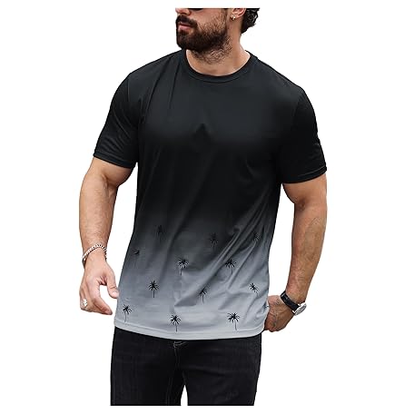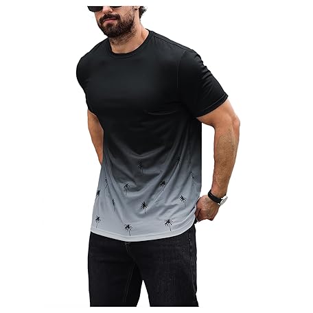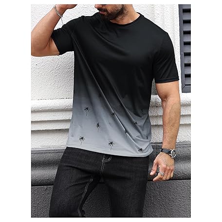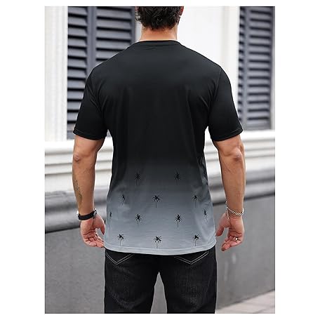 • SOLY HUX Men's T Shirt Graphic Ombre Shirt Top Crew Neck Short Sleeve Tropical Print Casual Tees