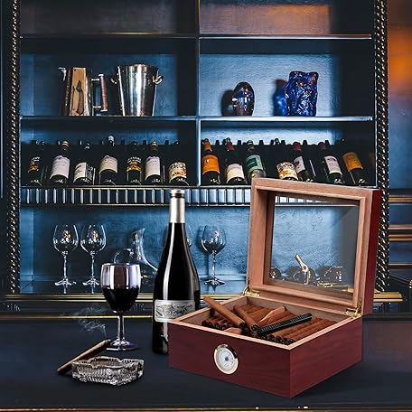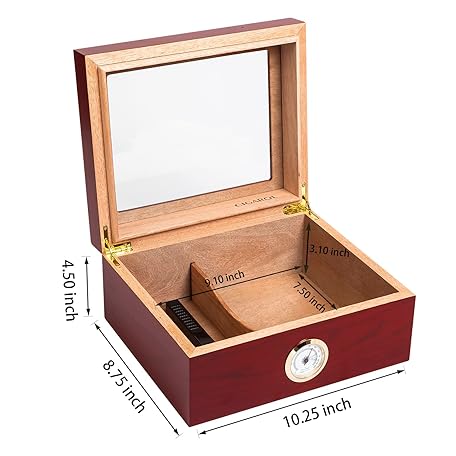 Thông tin sản phẩm Somduy Cigar Humidor for 30-50 Cigars with Humidifier and Hygrometer,Desktop Cedar Wood Cigar Box Storage Case with Divider, Glass Top, Gift for Men,Reddish Brown