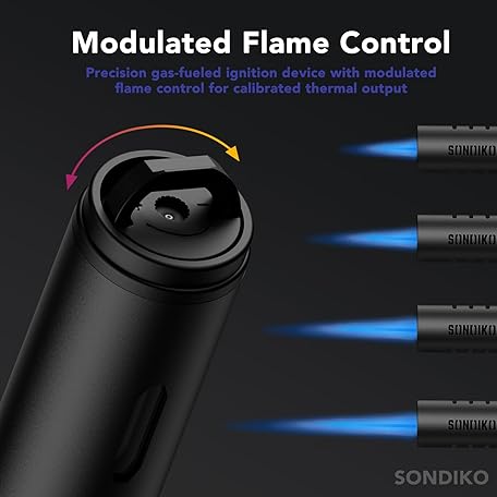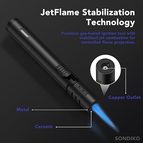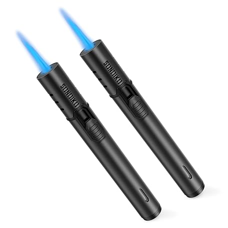 Sondiko Torch Lighters, Refillable Butane Lighter with Adjustable Jet Flame, Metal Shell, Transparent Fuel Window, Butane Nozzle Adapter Kit for Candle, BBQ, Fireworks, BUTANE NOT INCLUDED