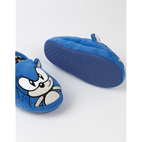Sonic The Hedgehog Kids Slippers | Blue Plush Pyjamas Shoes with Embroidered Face & 3D Ears | Boys Girls Toy House Mules