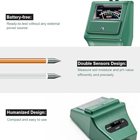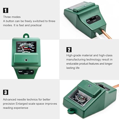 Thông tin sản phẩm SONKIR Soil pH Meter, MS02 3-in-1 Soil Moisture/Light/pH Tester Gardening Tool Kits for Plant Care, Great for Garden, Lawn, Farm, Indoor & Outdoor Use (Green)
