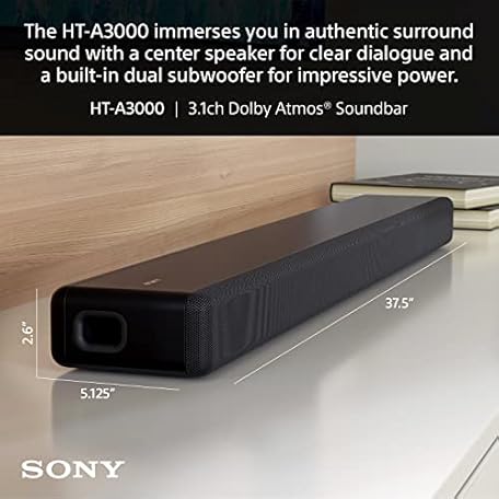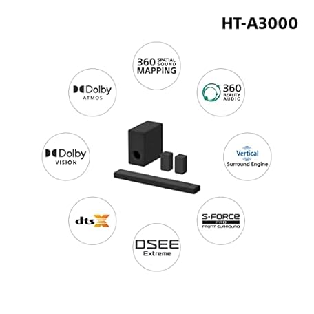 Thông tin sản phẩm Sony HT-A3000 3.1ch Dolby Atmos TV Sound Bar with DTS:X, 360 Spatial Sound Mapping, Dual Subwoofers, Wi-Fi, Bluetooth, Airplay 2