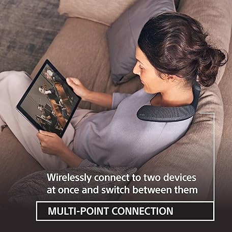 Thông tin sản phẩm Sony SRS-NS7 Neckband Bluetooth Speaker/headphone for TV listening with personalized home theater audio, Built-in mic, 12 Hour Battery Life, IPX4 Splash-Resistant, included wireless adaptor WLA-NS7