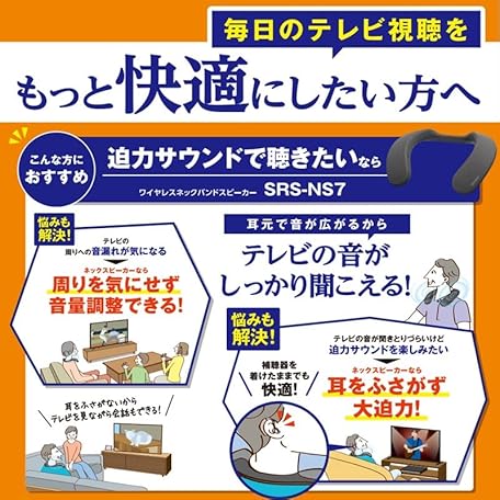 Thông tin sản phẩm Sony SRS-NS7 Wireless Neckband Speaker, 360 Reality Audio, Hands-Free Calling, IPX4 Splashproof, Long Battery, 12 Hours, Fast Charge 10 Minutes of 60 Minutes, SRS-NS7 HC